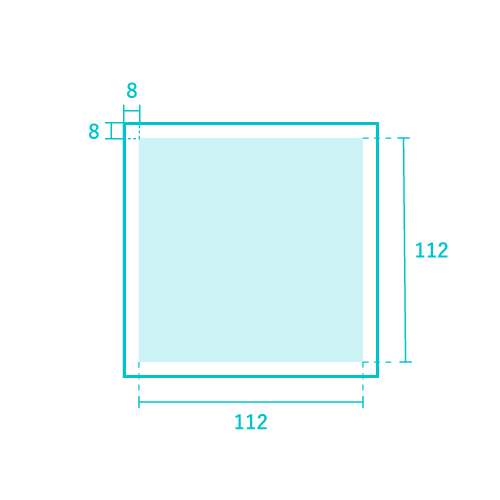 アイコンの周りには上下左右に各8pxの余白を確保してください