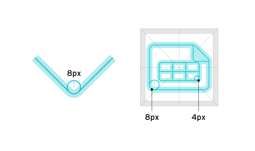 ガイドラインに沿って作成するのが難しい場合は、ガイドラインを逸脱し作成しても構いません。 認識しやすい形状であり、なおかつ他のアイコンと見た目が統一されていることを優先し作成してください。