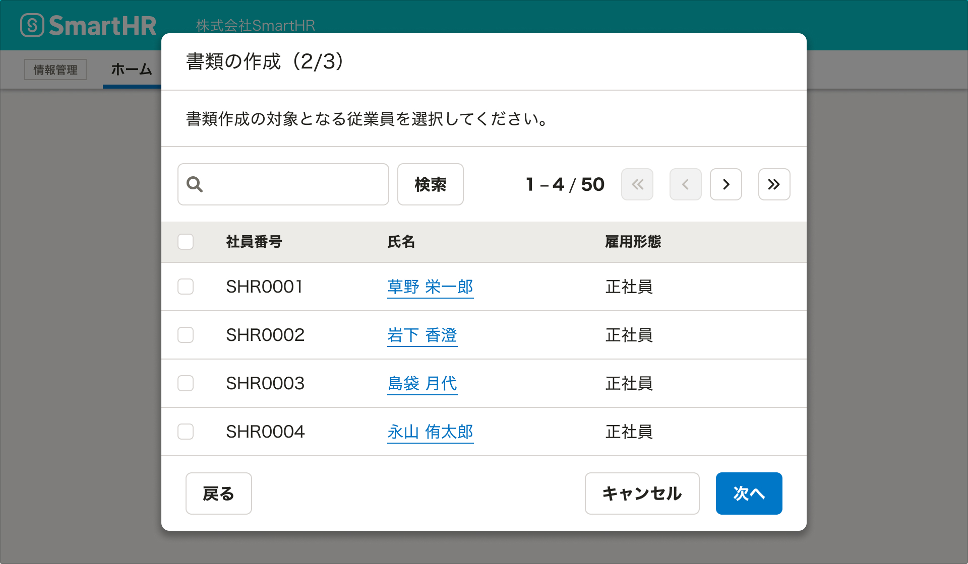 ウィザードは、基本的にはモーダルダイアログを使って提供します。SmartHRでは、専用のコンポーネントとしてStepFormDialogを用意しています。